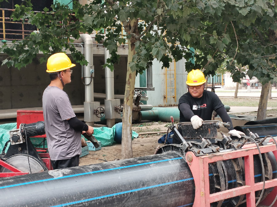為保證施工進(jìn)度,車(chē)間、設(shè)備科、施工方一起制定施工計(jì)劃,簽訂施工進(jìn)度協(xié)議,進(jìn)入七月份后最高溫度達(dá)到39攝氏度,為保證施工不受影響,經(jīng)與安全部門(mén)溝通,施工避開(kāi)中午高溫時(shí)間段,早上班晚下班。施工人員每天早晨服用規(guī)定量的防暑藥,每日攝取一定量的淡鹽水。車(chē)間安排專(zhuān)職監(jiān)護(hù)人員,同施工隊(duì)一同上下班,監(jiān)督施工安全及協(xié)調(diào)人員防暑等相關(guān)工作。烈日炎炎下,每個(gè)施工點(diǎn)都能看見(jiàn)一位身穿綠色馬甲、頭戴白色監(jiān)護(hù)帽的安全監(jiān)護(hù)員。
