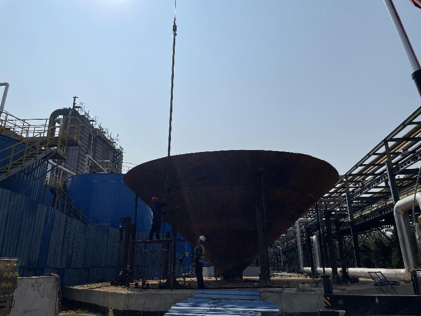 很快,項(xiàng)目破土動(dòng)工。車(chē)間嚴(yán)抓施工質(zhì)量,從打樁到降水挖槽,施工進(jìn)度持續(xù)推進(jìn)。5月份完成基礎(chǔ)澆筑成型,7月份開(kāi)始罐體焊接,現(xiàn)已完成罐體底部焊接。目前,整個(gè)工程已基本完工。
