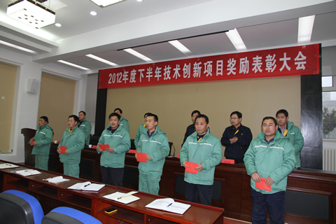 元月30日,公司2012年度下半年技術(shù)創(chuàng)新項目獎勵表彰大會在多媒體會議室舉行。會上,公司獎勵技術(shù)創(chuàng)新有關(guān)人員1.87萬元,并號召全員行動起來,向他們學習創(chuàng)新、踐行創(chuàng)新,讓創(chuàng)新內(nèi)化為金能人的自覺行動,助力公司的持續(xù)健康發(fā)展。(圖為頒獎現(xiàn)場)。